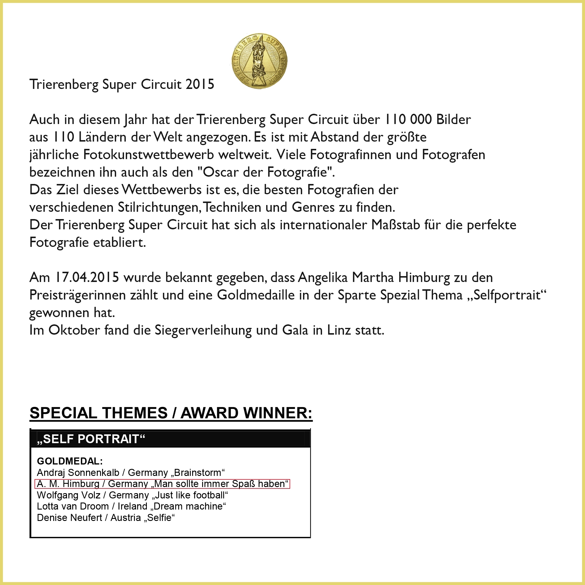 -> TRIERENBERG SUPER CIRCUIT – Goldmedaille Kategorie Selbstportrait—-> INFO —->INFO